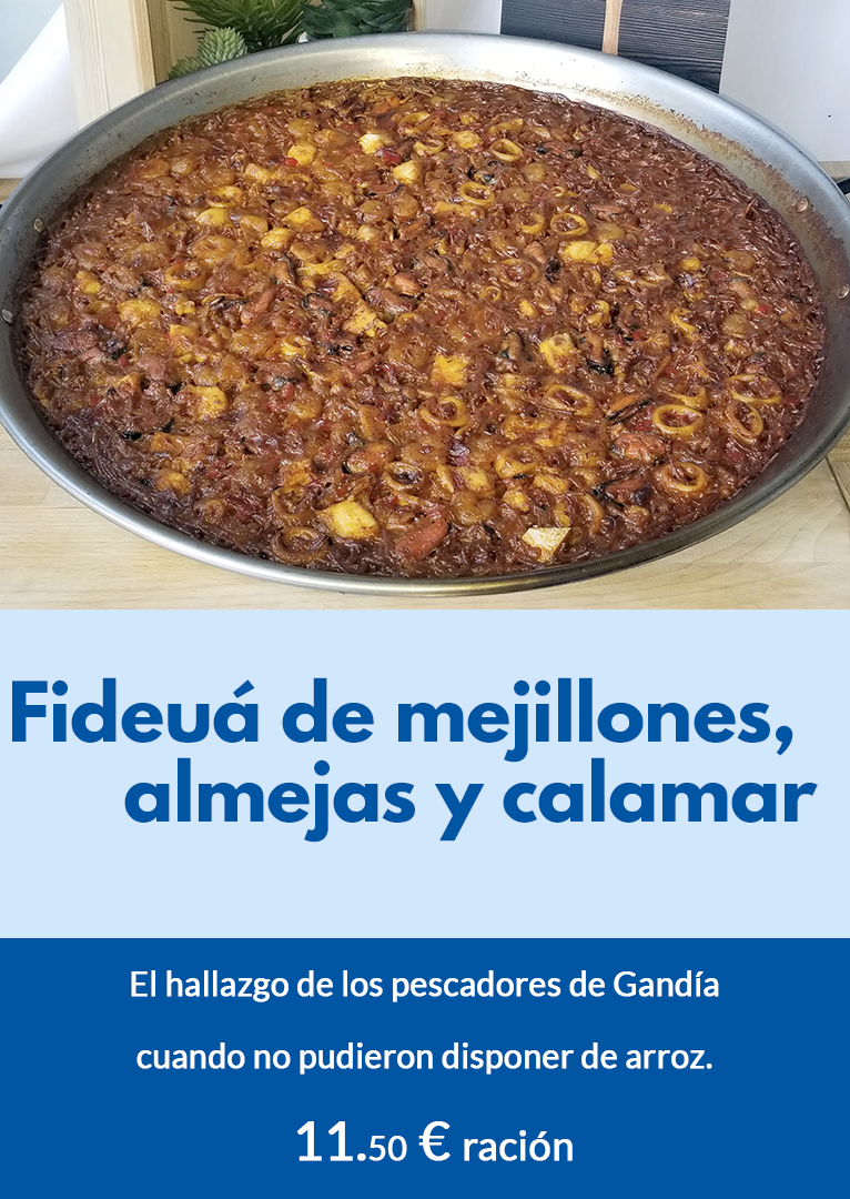 - Fideuá de presa ibérica, calabacín, berenjenas y sobrasada
